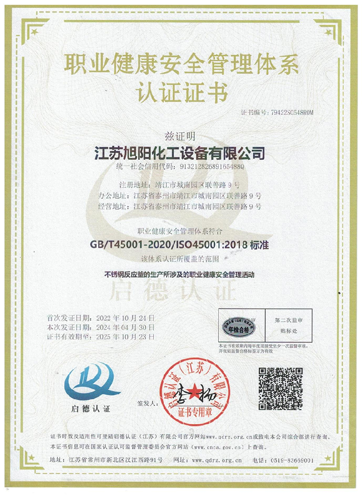 江蘇旭陽(yáng)化工設(shè)備有限公司專(zhuān)業(yè)從事各類(lèi)化工、環(huán)保、制藥、發(fā)酵、食品、新材料、鋰業(yè)等項(xiàng)目設(shè)計(jì)、制造及壓力容器的生產(chǎn)制造,是一家集研發(fā)、生產(chǎn)和進(jìn)出口貿(mào)易于一體的高科技企業(yè)。